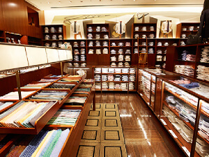 1Fのメンズエリアではシャツやニット、タイなどが圧巻の品揃え。イタリア・英国などの一流ブランドがラインナップしています。