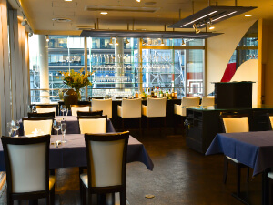 大きな窓から夜景が見える開放的な店内は、都会の喧騒を離れてごゆっくりおくつろぎいただける空間となっております。